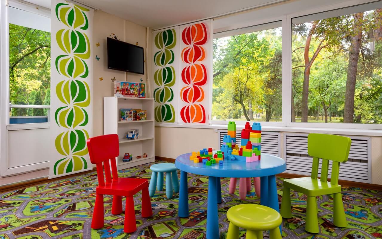 Комплекс состоит из четырех современных комфортабельных корпусов, общей вместимостью 355 человек.