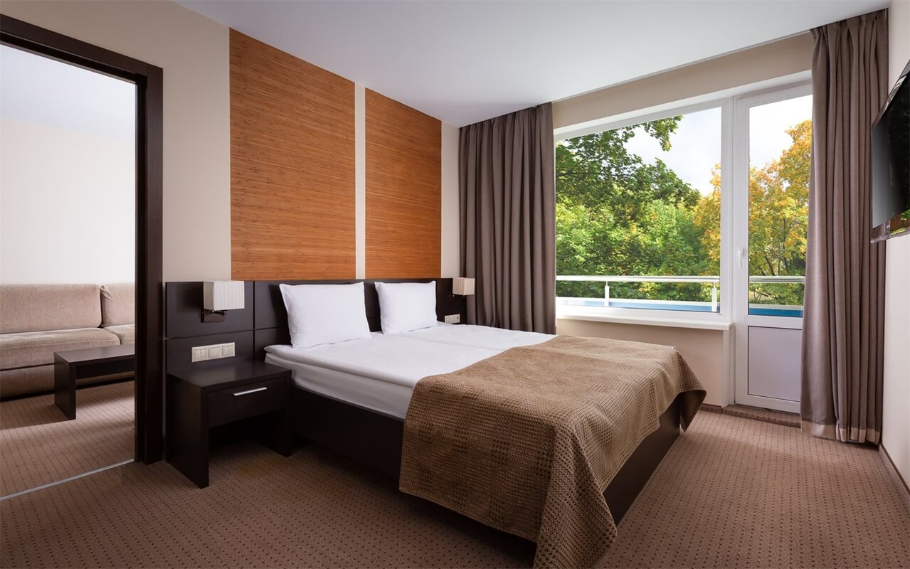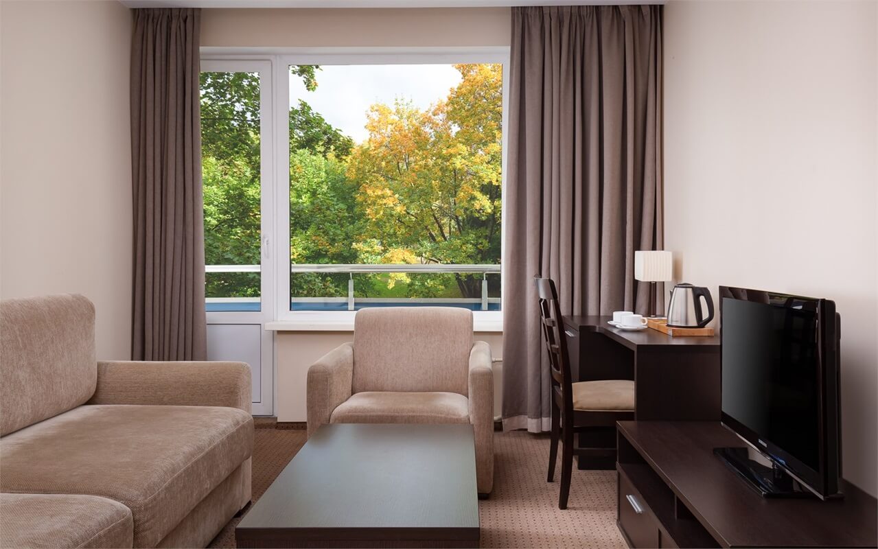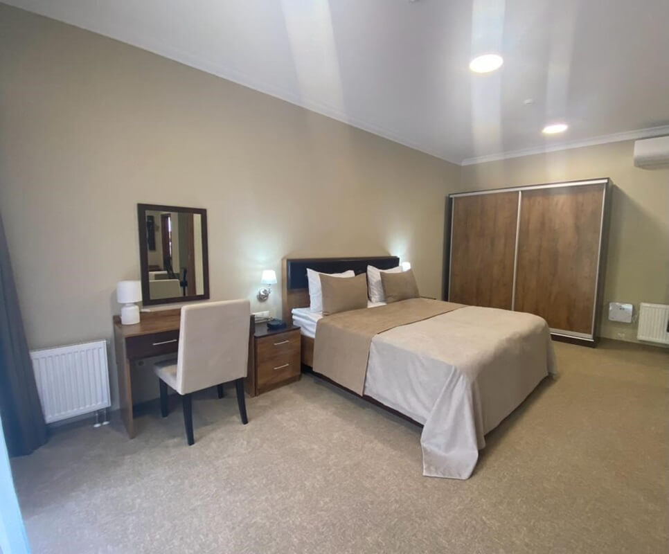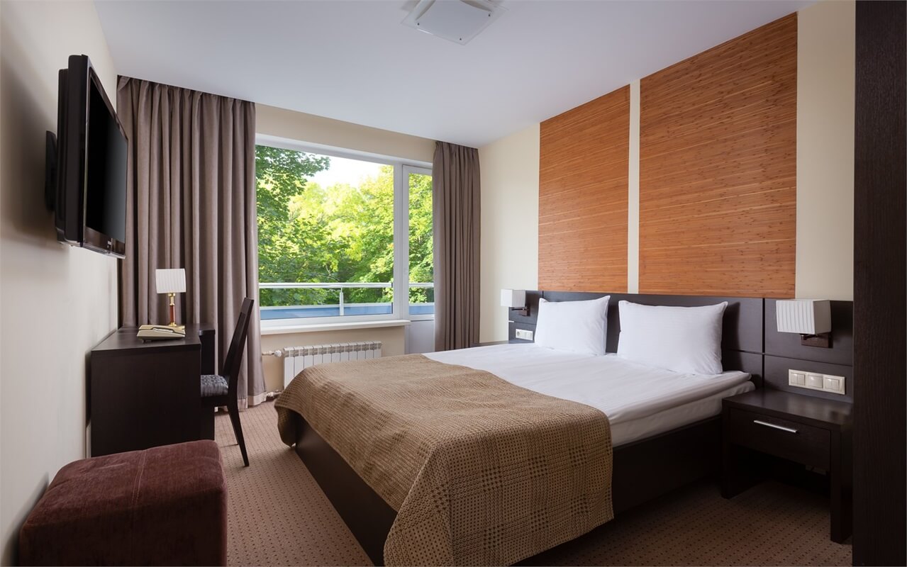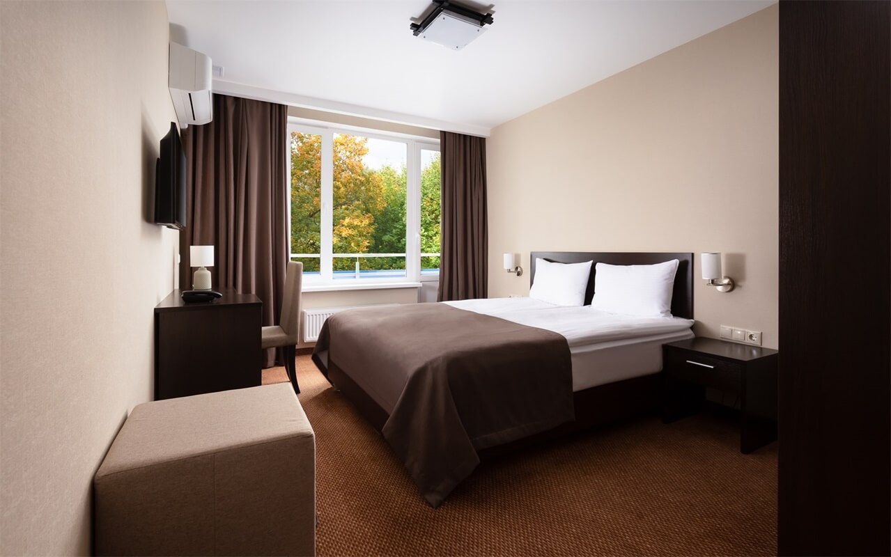 Номера различных категорий – от уютных одноместных до просторных люксов – оборудованы современной мебелью, имеют индивидуальные ванные комнаты и, естественно, доступ к высокоскоростному Wi-Fi.