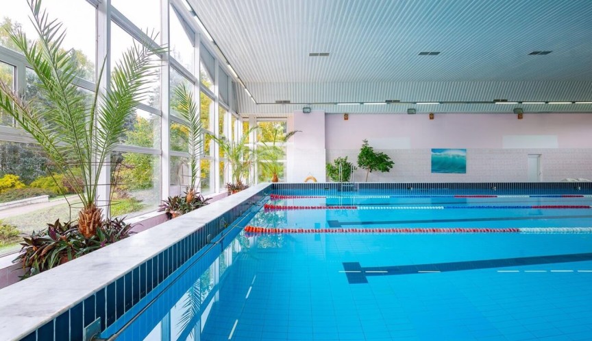 Плавательный бассейн (25 метров, 4 дорожки) расположен в главном корпусе.
